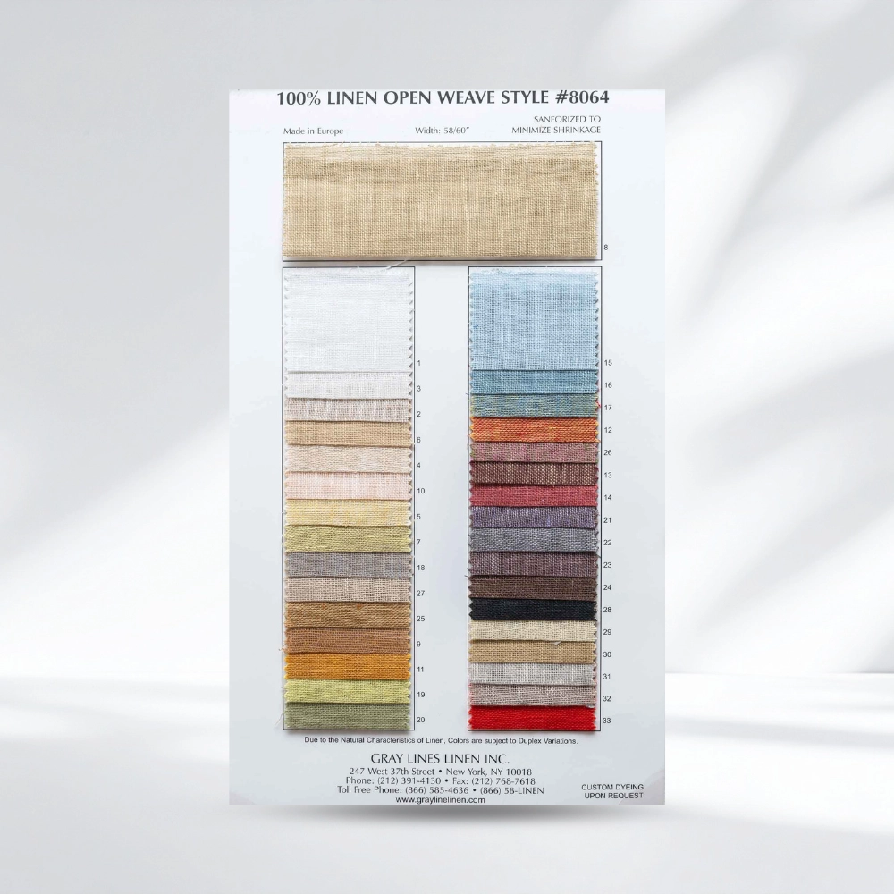 All Linens Cotton Cotton Poly Cotton Poly-Linens Cotton Embroidery Silks Fabric Cards Open Weave Linen Fabric Card $12.00 Open Weave Linen Fabric Card quantity Add to cart Handkerchief Linen Fabric Card $12.00 Handkerchief Linen Fabric Card quantity Add to cart Yarn Dye Handkerchief Linen Fabric Card $12.00 Yarn Dye Handkerchief Linen Fabric Card quantity Add to cart Join Our Newsletter Success! Email Subscribe Visit 247 W 37th Street New York, New York 10018-4410 Contact info@graylinelinen.com (866) 585 – 4636 Follow Us FollowFollowFollowFollow Home Linens Bedroom Linens